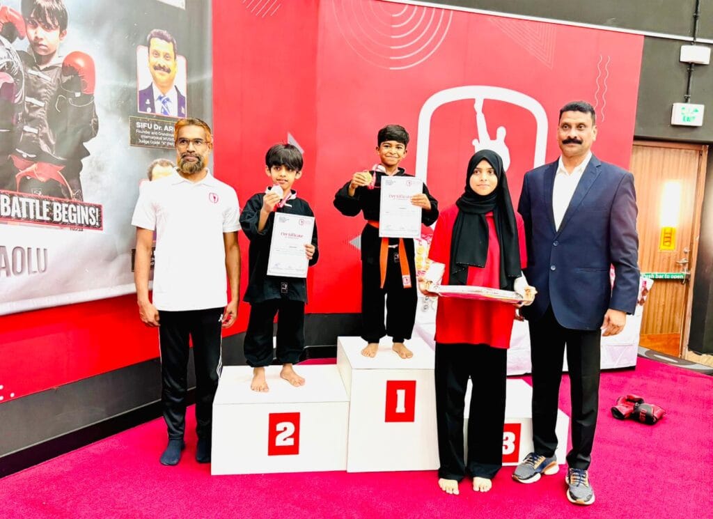 Ideal Indian School students participated in the Umai Inter-Club Kungfu Competition, held from November 21 to 23 at Umai Kunfu Academy, Al Wukair-Qatar. The Umai Kungfu Academy hosted its annual Inter-Club Competition, bringing together participants from various martial arts academies to showcase their skills in a spirited and competitive environment. Our students participated enthusiastically and demonstrated exceptional talent, discipline, and determination throughout the event.