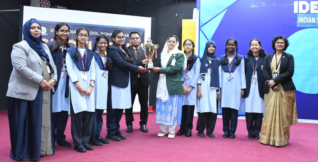 In a recently organized Prize Distribution Ceremony, Ideal Indian School honored the winners of Spotlight 2023, the cultural competition. More than 1700 students from the Junior, Boys, and Girls Sections took part in this talent recognition exercise. Divided into four categories – Sub-junior, Junior, Intermediate, and Senior – competitions ranged from performing arts to painting, vocal and instrumental music, classical and folk dances, songs, poem recitation, rangoli, public speaking, storytelling, and Quran memorization. Hifz, Tajweed and Adhan were exclusively for Muslim students. Principal Mr. Shaik Shamim Saheb presented the trophies to the winning houses and certificates to the winners. Heads of Sections and Departments attended the function.