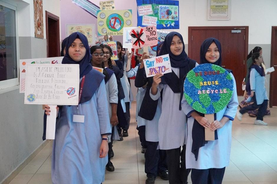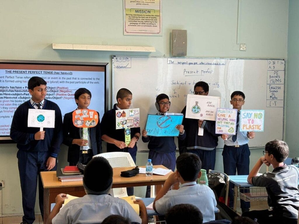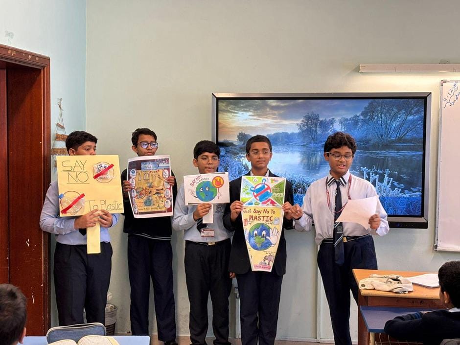 Day 2: Plastic-Free Day (9 December 2024) – Students participated in an awareness walk with placards on reducing plastic usage and pasted posters to spread the message. Students observed a plastic-free day by avoiding plastic tiffin boxes, bottles, and disposables, while teachers conducted lessons on reducing plastic dependency. A debate on “Plastic vs. No Plastic” was organized for Grade 11 and 9 students to discuss the benefits and drawbacks of plastic use.