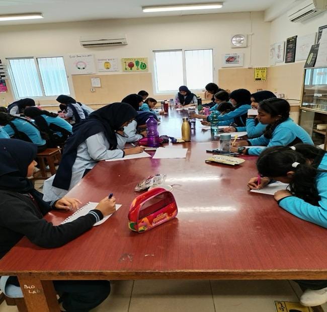 Day 1: POSHAN Abhiyaan (8th December 2024) – The day began with a pledge-taking ceremony in the morning assembly to emphasize the importance of nutrition. Green badges were distributed to teachers and Heads of Sections. Students from Grades 5 and 6 participated in an essay writing competition on the topic “Shree Anna: The Powerhouse of Nutrients.” A group discussion titled “Let’s Talk About Anemia” was conducted during science periods to spread awareness about anemia.